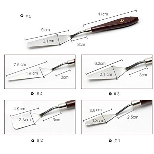 5pcs Malmesser Malspachtel Künstler Set für acryl und Öl Farbe Malen Schaber Edelstahl- ☑MATERIAL: Edelstahl mit Holzgriffen, leicht und einfach zu erfassen, Ideal für die Arbeit mit Ölfarben auf Leinwand oder Palett: Das Paket beinhaltet: 5 x Palettenmesser."
