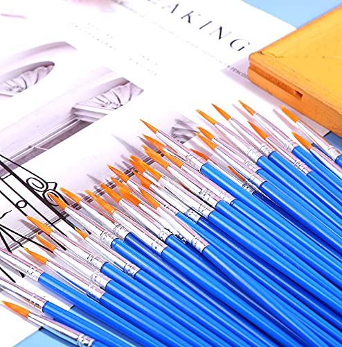Home 60 Stück Pinsel, Runde Flache Kleine Pinselset Pinsel Set Acryl & Ölgemälde Perfekt für Anfänger, Künstler und Gemälde Liebhaber (30 Runde und Flache)