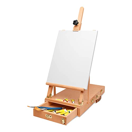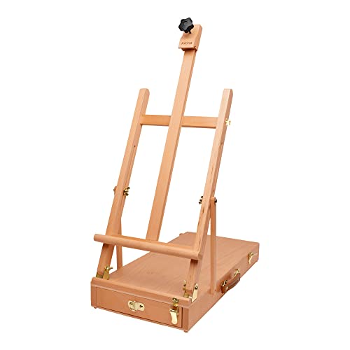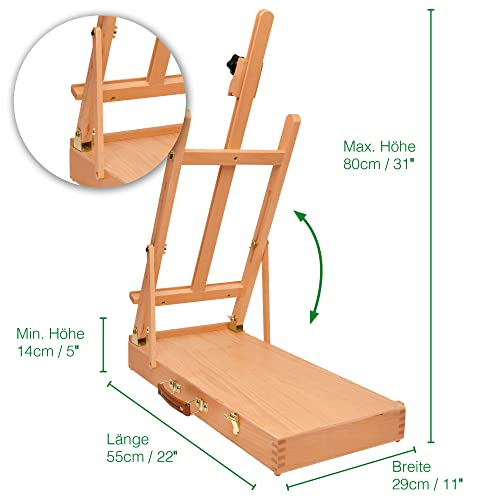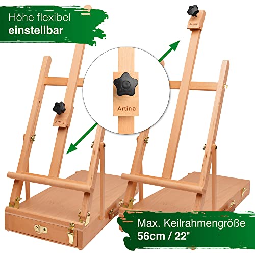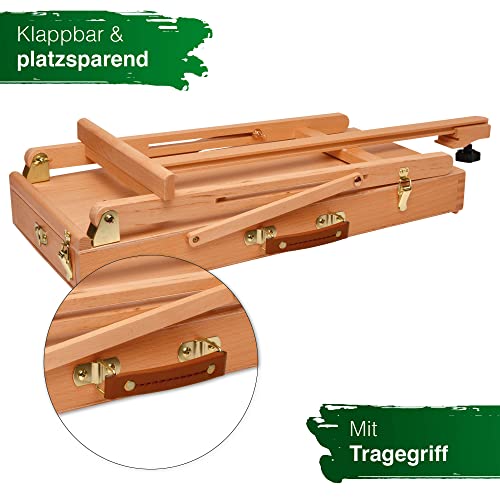 Staffeleien Artina Kofferstaffelei Tischstaffelei für Keilrahmen bis 56 cm Le Mans – Zeichenbrett mit Schublade, Holzstaffelei Buche Malkoffer mit verstellbarem Neigungswinkel, Künstlerkoffer Staffelei Tisch