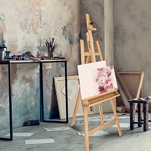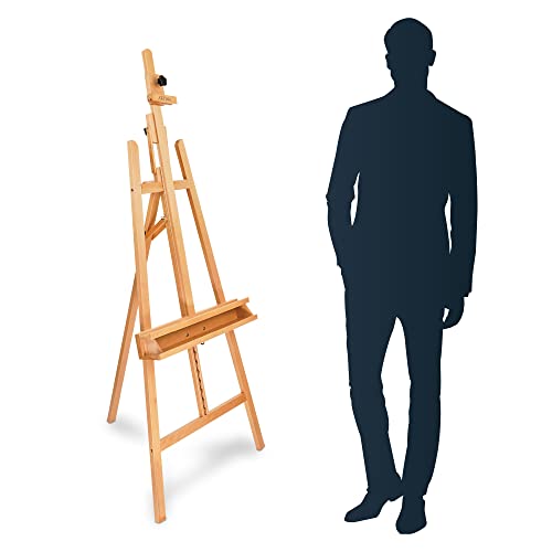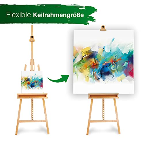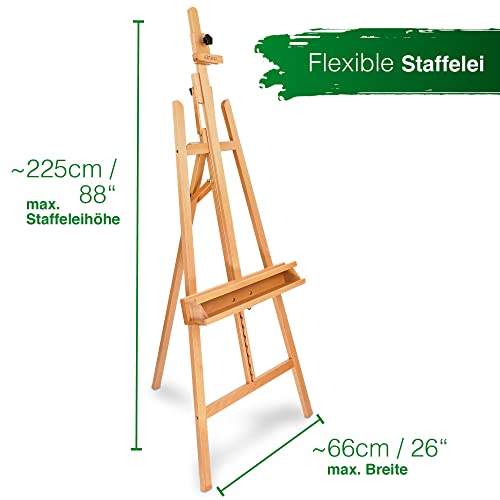 Staffeleien Artina Staffelei Holz Groß Barcelona – Holzstaffelei für Leinwände bis 120cm – 225cm höhe verstellbar Malstaffelei Leinwandständer klappbar Atelierstaffelei für Künstler, Hochzeit, Events Buche