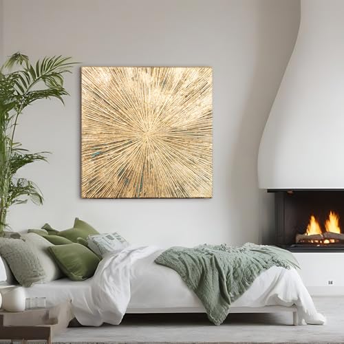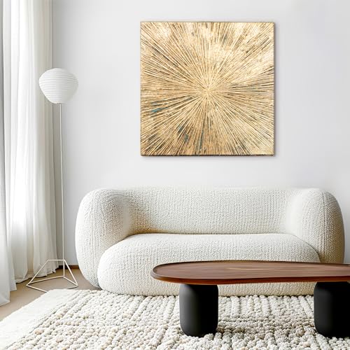 AUREDAS Großes Wandbild 100x100 Handgemaltes Acryl-Gemälde auf Leinwand in Blattgold ohne Rahmen für moderne WohnräumeAUREDAS Großes Wandbild 100x100 – Handgemaltes Acryl-Gemälde, Quadratisch auf Leinwand in Blattgold ohne Rahmen – Dekoration für Wohnzimmer, Büro, Schlafzimmer – Schatten des Seins
