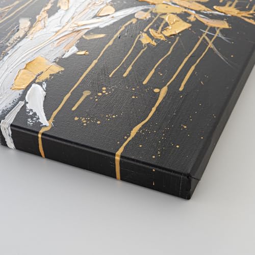 AUREDAS Handgemaltes Acrylgemälde Golden Leaves 60×80 cm in Schwarz & Gold – Hochformat – Leinwand – Schwarz/Weiß – moderne Wanddekoration – hochwertiger DruckAUREDAS Handgemaltes Acrylgemälde in Schwarz & Gold Abstrakt auf Leinwand - Golden Leaves - 60x80 groß ohne Rahmen Wandbild für Wohnzimmer, Schlafzimmer oder Büro im Hochformat