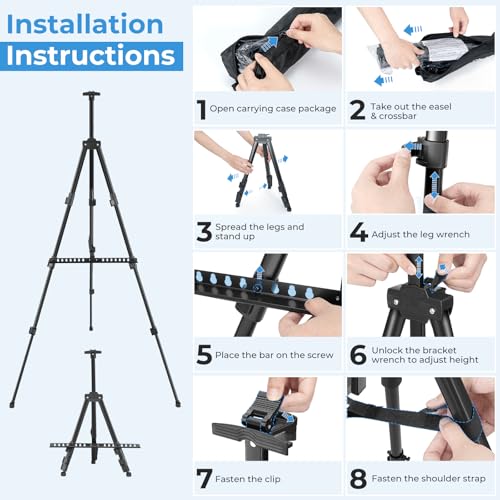 - Verstellbare Staffelei - Mit ihren verstellbaren Schnallen lässt sich diese Staffelei mühelos aufspannen und verstauen. Sie können die Höhe von 43cm bis 66cm verstellen, was sie vielseitig genug macht, um Leinwände oder Rahmen bis zu 92cm hoch zu halten. Mit einer maximalen Tragfähigkeit von 6,8 kg ist diese Staffelei benutzerfreundlich und stabil und eignet sich sowohl für Erwachsene als auch für Kinder!