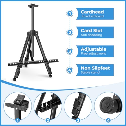 - Robust und langlebig - Diese Staffelei ist aus einer hochwertigen Legierung gefertigt und für eine lange Lebensdauer ausgelegt. Sie wurde rigoros getestet, um sicherzustellen, dass sie rostfrei ist und sich nicht verformt. Der rutschfeste Sockel bietet einen sicheren Halt und kann in mehreren Winkeln eingestellt werden, um sich an verschiedene Oberflächen und Situationen anzupassen. Ganz gleich, ob Sie auf unebenem Untergrund oder auf einem Studioboden malen, diese Staffelei steht felsenfest.