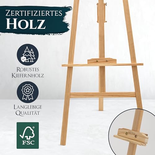 FSC-zertifizierte Holzstaffelei in zwei Größen für vielseitige AnwendungenArtina Staffelei Holz Groß - FSC® Kiefernholz 150cm Holzstaffelei - Feldstaffelei höhenverstellbar große & kleine Keilrahmen – Staffelei für Kinder & Erwachsene, Hochzeit, Leinwände, Easel – Tessin