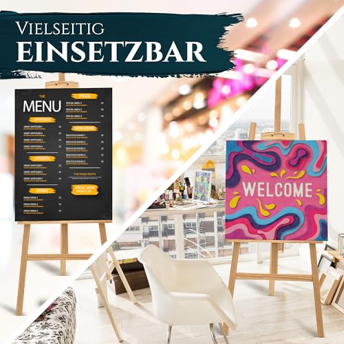 - 𝐕𝐈𝐄𝐋𝐒𝐄𝐈𝐓𝐈𝐆 𝐄𝐈𝐍𝐒𝐄𝐓𝐙𝐁𝐀𝐑 - 𝐅Ü𝐑 𝐌𝐀𝐋𝐄𝐑𝐄𝐈, 𝐏𝐑Ä𝐒𝐄𝐍𝐓𝐀𝐓𝐈𝐎𝐍 & 𝐃𝐄𝐊𝐎𝐑𝐀𝐓𝐈𝐎𝐍 - Ob als Malstaffelei aus Holz, Staffelei für Hochzeiten, Bilderhalter bei Ausstellungen oder Dekoständer bei Feiern – diese Staffelei ist funktional, robust und optisch ansprechend. Auch als Geschenkidee eine kreative Wahl.
