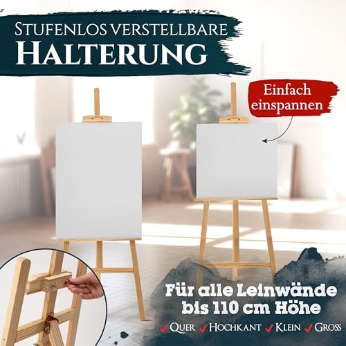 - 𝐕𝐈𝐄𝐋𝐒𝐄𝐈𝐓𝐈𝐆𝐄 𝐇𝐎𝐋𝐙𝐒𝐓𝐀𝐅𝐅𝐄𝐋𝐄𝐈 𝐈𝐍 𝐙𝐖𝐄𝐈 𝐆𝐑Öß𝐄𝐍 - 𝟏𝟓𝟎𝐂𝐌 - Hochwertige Staffelei aus FSC-zertifiziertem Kiefernholz, verfügbar in zwei Größen. Geeignet für Leinwände bis 110 cm (150 cm Modell) bzw. bis 125 cm (175 cm Modell). Die ideale Malerstaffelei für Anfänger, Hobbykünstler und Profis.