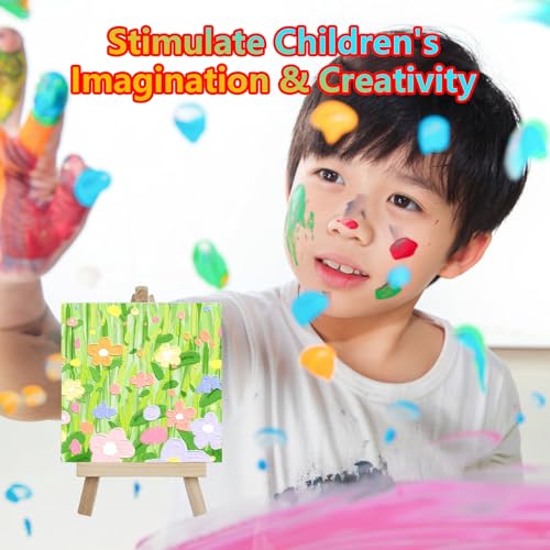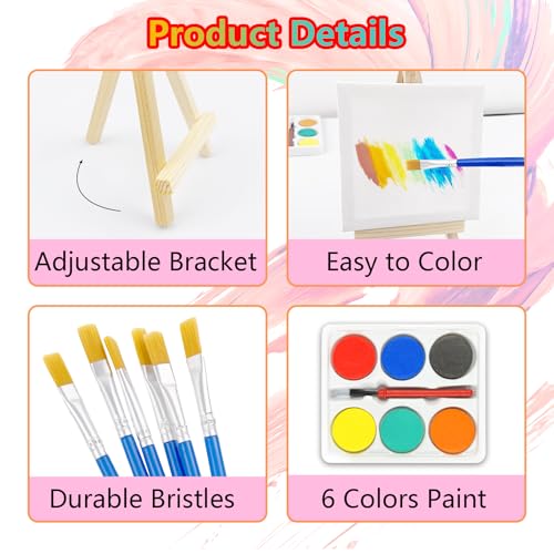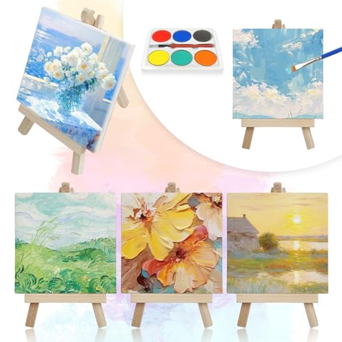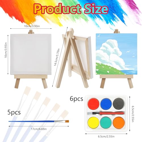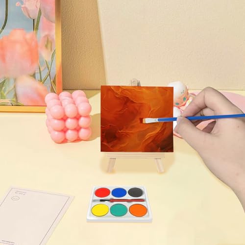 GOTRUST 6 Stück Mini Leinwand mit Staffelei 10x10cm, Tischstaffelei Holz Klein Set, Mini Staffeleien mit Kunst Leinwände, Tisch Dekoration Staffeleien Kit für Display Fotos Kinder Malen🎨 [23pcs Staffelei Leinwand Set] Die mini leinwand einschließlich 6pcs Mini Staffeleien, 6pcs Kunst Leinwände, 5pcs Pinsel und 6pcs Farbe. Ein komplettes Set kann Ihre Malbedürfnisse erfüllen.