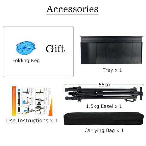 - ➽ Stativ Staffelei zum Bemalen von Leinwand und zum Ausstellen, als Tischstaffelei mit strapazierfähiger Kunststoffschale und als Ausstellungsstand mit klappbarem Eimer, um das Gewicht zu erhöhen oder andere Gegenstände zu platzieren.
