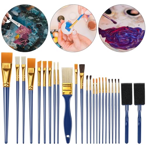 Pinsel Halobios 25 Stück Acryl Pinsel Set, Künstlerpinsel im Set, Schaumpinsel Acrylpinsel Aquarellpinsel Pinselsets für Wasserfarben Anfänger,Kinder und Gemälde Liebhaber