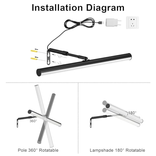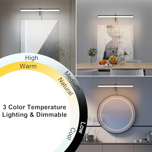 - 3CCT-3000K | 4000K | 6000K: Plug in Bild Licht für Malerei setzt 3 Beleuchtung Farbmodi: 3000K warmes Licht, 4000K natürliches Licht und 6000K kühles Licht zur Auswahl. Bietet weiches Leuchten für Ihre Gemälde, fügt einen wunderschönen letzten Schliff auf Ihre Kunst-Display