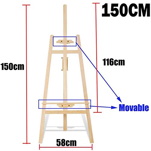 - ✨ STABILITÄT: Diese Bodenstaffelei hat eine stabile A-Rahmenkonstruktion für Stabilität. Gesamthöhe: 150 cm, Bodenbreite: 58 cm, kann Leinwandgröße maximal in 99 cm halten.