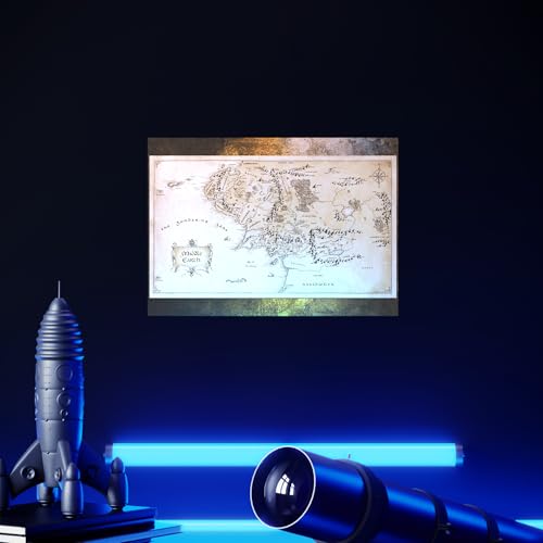 Displate Offiziell Middle Earth MetallPoster Magnetische Befestigung Inklusive Lizenziert Bilder Hochwertiges Poster Middle-Earth Maps - Middle-Earth Map 45 cm x 32 cm