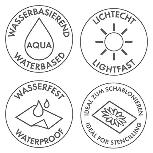 Cremige Acryl-Malfarbe auf Wasserbasis"Wasserfest und lichtbeständig"Gute Deckkraft und Vermalbarkeit"Schnell trocknend und nach der Trocknung wasserfest"Ideal zum Schablonieren und Stempeln
