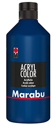 Acrylfarbe Marabu 12010075053 - Acryl Color dunkelblau 500 ml, cremige Acrylfarbe auf Wasserbasis, schnell trocknend, lichtecht, wasserfest, zum Auftragen mit Pinsel und Schwamm auf Leinwand, Papier und Holz