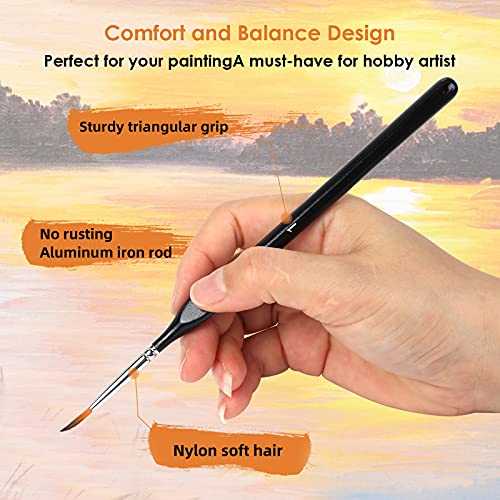 Molain 15 teiliges Pinsel Set für feine Details, Kunstmalpinsel Set mit dreieckigen Griffen Miniatur Pinsel Spitze Spitze Künstlerpinsel für Acryl Öl Aquarell Gesicht Nägel Modellmalerei【15 Stück/Set Pinsel】 Sie erhalten 15 Stück Miniatur-Pinsel in 15 verschiedenen Größen, inklusive verschiedenen feinen, lineren, runden und flachen Pinseln, die Ihren Ansprüchen an feine Details gerecht werden."【Hohe Qualität】 Das Pinsel-Set ist aus feinem synthetischen Nylon, hitze- und verschleißfest mit guter Flexibilität und starker Adsorption, geeignet für Gouache-Ölmalerei, Acryl usw."【Robust und langlebig】Diese kleinen feinen Pinsel sind mit haltbaren Anti-Haarausfall-Borsten und robusten dreieckigen Holzgriffen entworfen, die sich nicht leicht verformen oder brechen lassen. Der Aquarellpinsel kann für eine lange Zeit verwendet werden."【Bequem zu verstauen】Die feinen Pinsel sind klein und leicht. Reinigen Sie einfach Ölpinsel mit warmem Seifenwasser oder Lösungsmittel, dann bringen Sie die Pinselspitzen mit den Fingern neu in die Form, trocknen Sie die Pinsel an der Luft und bewahren Sie sie auf."【Breite Anwendung】 Das Acryl-Pinsel-Set mit feiner Spitze ist multifunktional, sie sind praktisch für Aquarell, Öl, Gouache, Acrylmalerei, Körper, Nagel, Gesichtsmalerei, Steinmalerei, Miniatur, Modell, Keramik, Kunst und Handwerk Malerei usw. Schön für Maler aller Niveaus, einschließlich erfahrener Künstler und Anfänger.
