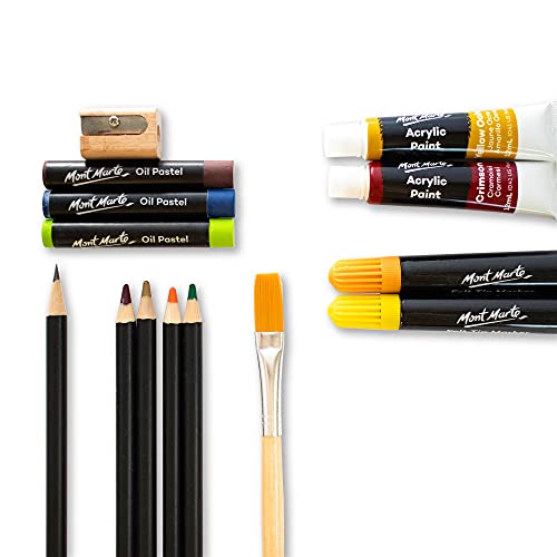 Pinsel Mont Marte Premium Malset – 90-teilig – Hochwertiger Malkoffer aus Aluminium mit essentiellen Malmedien – Acryl-, Ölpastellfarben, Stifte, Pinsel und vieles mehr