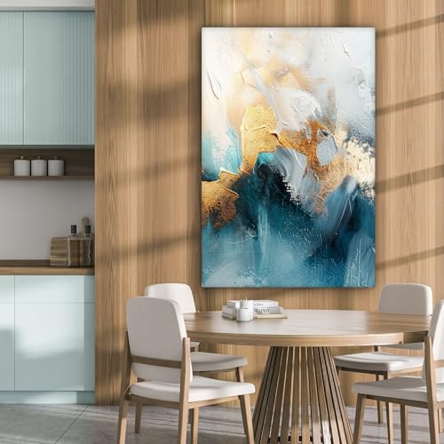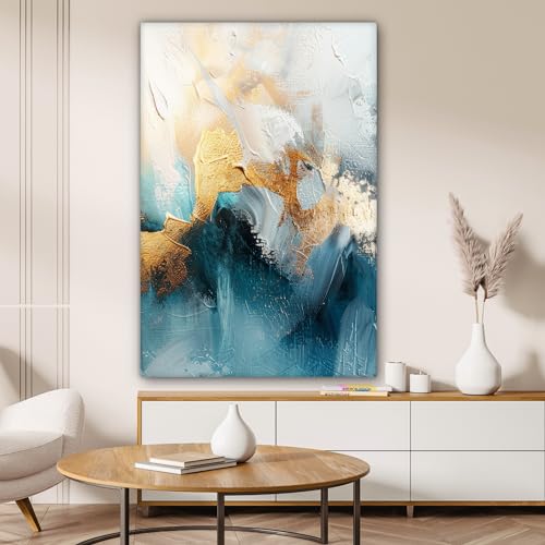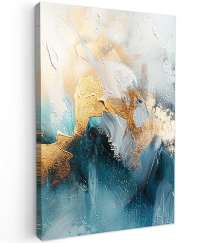 MuchoWow© Leinwandbilder Groß 80x120 cm XXL Wall Art Decoration Bilder für die Wand Schlafzimmer Deko Canvas Painting Wanddekoration Wohnzimmer Abstrakt - Kunst - Gold - Blau- HOCHWERTIGER DRUCK: Erleben Sie mit unseren Wand Deko Bild auf Leinwand Druck eine beeindruckende Bildqualität. Die hochwertige Druckqualität und die satten Farbtöne werden über den gesamten Rand unserer Leinwände gedruckt.