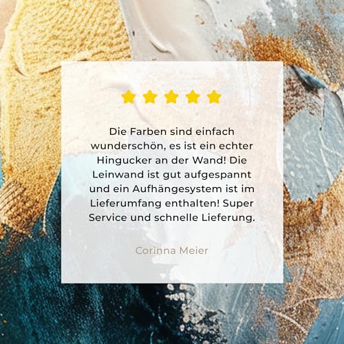 - EINFACHES UND PRAKTISCHES AUFHÄNGESYSTEM: Unser Leinwand Bilder wird mit einem intelligenten Aufhängesystem geliefert, das Ihnen eine einfache und sichere Befestigung an der Wand ermöglicht. Bringen Sie Ihre Wand Deko mühelos an und genießen Sie ihren Zimmer Deko in kürzes.