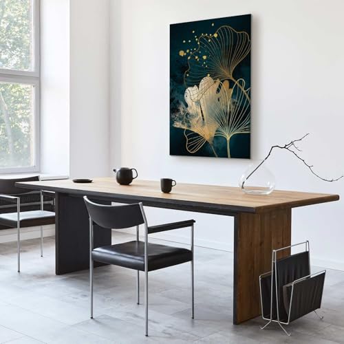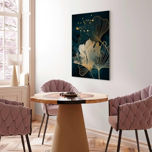 Das murando Leinwandbild fängt die Schönheit der Natur in abstrakten Farben ein. Mit einer Größe von 60x90 cm, ist es ein prächtiger Hingucker für jede Wand. Der moderne Kunstdruck auf Vlies Leinwand zeigt ein Ginkgo-Blatt in Türkis, das fast wie handgemalt aussieht. Eine großartige Wahl für eine stilvolle Wanddekoration.