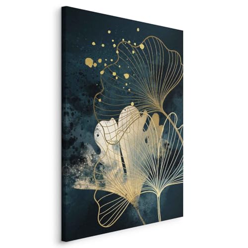 murando - Leinwand Bilder Abstrakt Natur 60x90 cm Vlies Leinwandbild 1 tlg Kunstdruck modern Wandbilder Groß XXL Wanddekoration Design Wandbild Blätter Pflanze Ginkgo türkis wie gemalt- Gesamtformat: ungefähr 60x90 cm (BxH) - einteilig auf Premium Leinwand