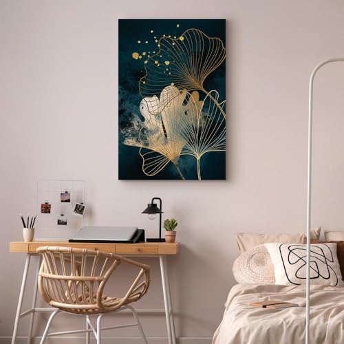 Leinwandbilder Murando Wandbild 80×120 cm – Abstrakte Natur – Vlies – Ginkgo – Motiv in Türkis – Hochformat – Leinwand – moderne Wanddekoration – hochwertiger Druck – klare Details