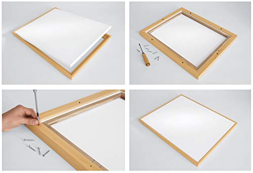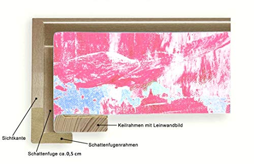 Zur gewählten Größe werden 0,5 cm Schattenfuge auf jeder Seite dazuaddiert, so das Ihre Leinwand problemlos eingesetzt werden kann. Bsp.: Sie bestellen 60 x 80 cm und erhalten 61 x 81 Innenmaß.