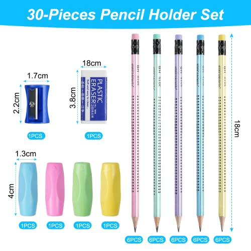 Bunt- & Bleistifte OFFCUP HB Bleistifte, 30 Stück Bleistift mit 4 Stück Schreibhilfe & Bleistiftspitzer Radiergummi, Dreikant Bleistifte Kinder, Graphitstift rutschfest Schreiben Skizzieren Zeichenwerkzeuge