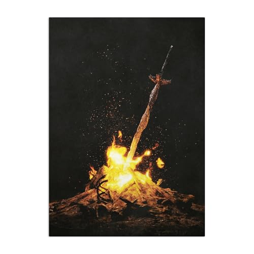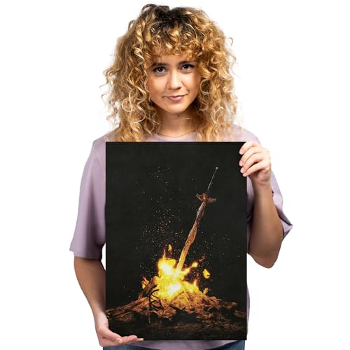 Displate Offiziell Dark Souls MetallPoster Magnetische Befestigung Inklusive Lizenziert Bilder Hochwertiges Poster Bonfire Poster 45 cm x 32 cm