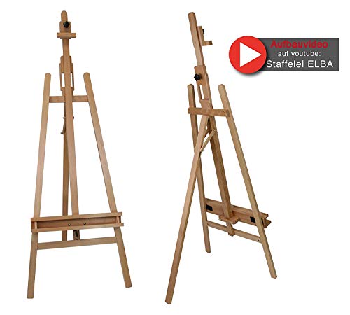 Die Paintersisters® Akademie Staffelei ELBA ist eine vielseitige Künstlerausstattung, ideal sowohl für sitzende als auch stehende Künstler. Sie ist klappbar, leicht zu transportieren und bietet Platz für Keilrahmen bis 120cm. Gefertigt aus lasiertem Buchenholz, bietet sie eine breite Ablage und stabile Dreibein-Konstruktion. Perfekt für das Studio oder unterwegs.