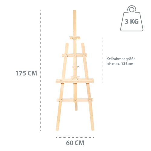 Staffelei Holz groß Leinwand Ständer 175 cm - Holzständer für Sitzplan Hochzeit Canvas Painting Staffeleien Bilderständer Easel für Kinder und Erwachsene Kiefernholz✅【EXTRA STABIL & ROBUST】– Die 3-Fuß-Konstruktion von Staffelei Holz groß sorgt für maximale Standfestigkeit und verhindert Wackeln oder Umkippen. Ideal für intensive Nutzung in Atelier, Galerie, bei Veranstaltungen oder als Staffelei Hochzeit.